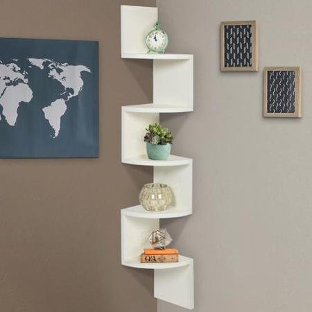 Large Corner Wood Zig Zag Wall Shelf White Finish Home Decor