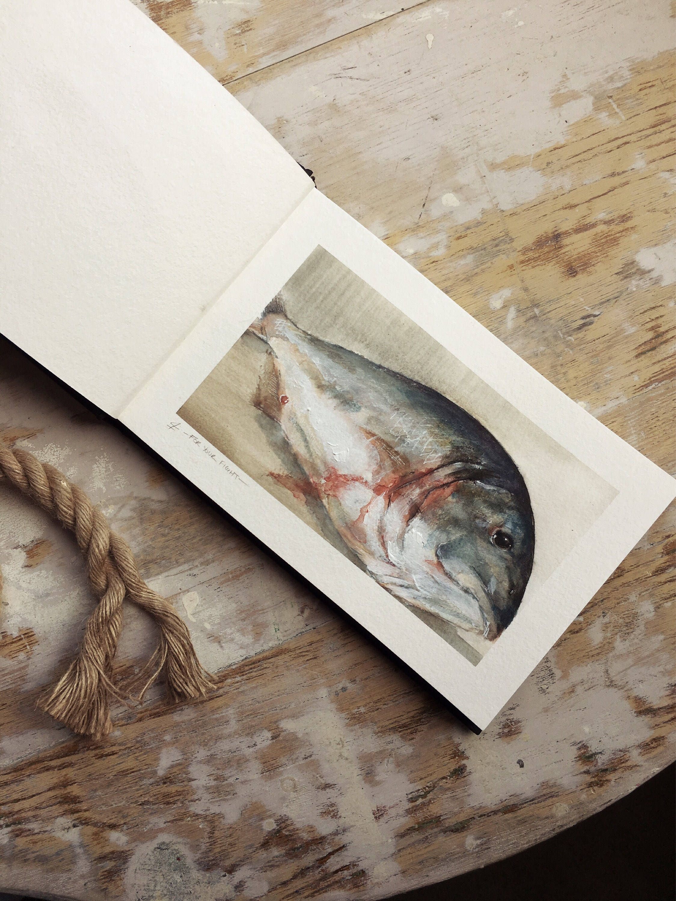 Original Watercolor Study Sketchbook Fish Art Fly Fishing